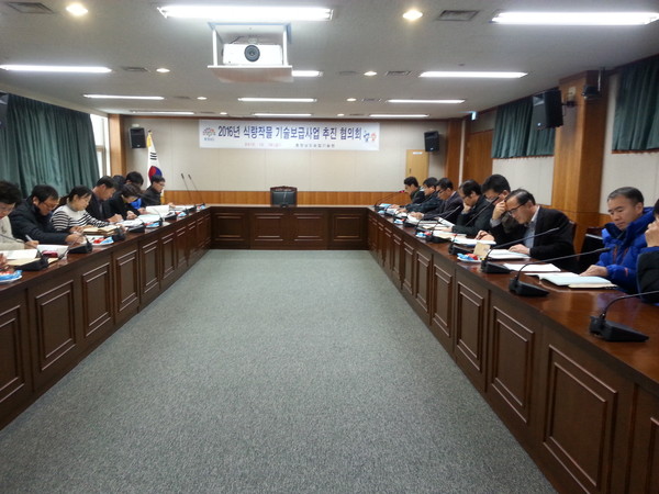 충남농업기술원은 18일 ‘2016년 식량작물 기술보급 시범사업 추진협의회’를 열고 고품질 안정생산 및 소득향상을 위한 맞춤형 신기술 보급 방안을 논의했다.