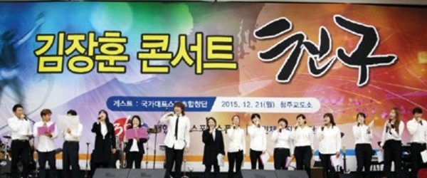 소속사 공연세상에 따르면 가수 김장훈은 21일 청주교도소에서 가진 콘서트 ‘친구’를 대한민국스포츠합창단과 수용자들로 이뤄진 밴드·중창단과 함께 어울려 타이틀에 걸맞게 감동적으로 연출했다.