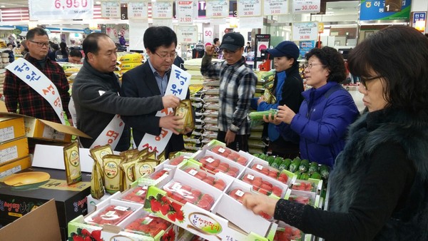 참여자들은 청원생명쌀, 애호박, 딸기, 고구마 등 경쟁력 있는 6품목을 선정, 제주도 하귀농협 하나로마트에 청원생명 농산물 판매 코너를 마련하고 판매와 더불어 시식행사와 할인행사도 함께 진행했다.