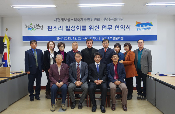 충남문화재단(이사장 안희정)은 23일 전남 보성문화원에서 이종원 충남문화재단 대표이사, 정형철 서편제 보성소리축제 추진위원장, 보성군청 문화관광과장 등이 참석한 가운데 판소리 활성화 및 발전을 위한 업무 협약을 체결했다.