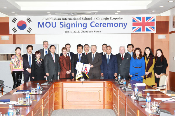 충북경제자유구역청(청장 전상헌)은 5일 오전 충북도청 소회의실에서 Sir Paul Judge 영국 St. Dunstan’s 교육재단 이사회 의장, 이시종 충북도지사, 조길형 충주시장, 전상헌 충북경제자유구역청장 간 충주 에코폴리스지구 내에 국제학교 설립을 위한 양해각서(MOU)를 체결했다고 밝혔다.