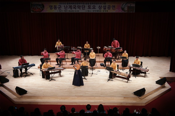 군립 난계국악단은 매주 토요일 오후 영동국악체험촌(심천면 고당리) 대공연장에서 1시간여 동안 다양한 퓨전 국악 공연을 관람객에게 선보이고 있다.