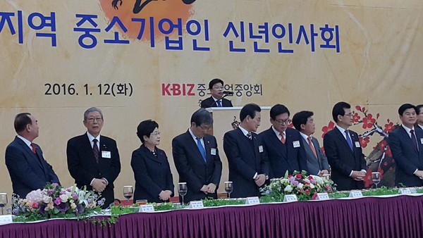권선택 대전시장이 12일 오전 라마다플라자청주호텔에서 열린 충청지역 중소기업인신년인사회에 참석, 인사말을 하고 있다.