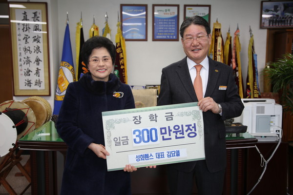 (주)성화휀스(대표 김묘열)는 19일 영동군민장학회에 장학금 300만원을 기탁했다.