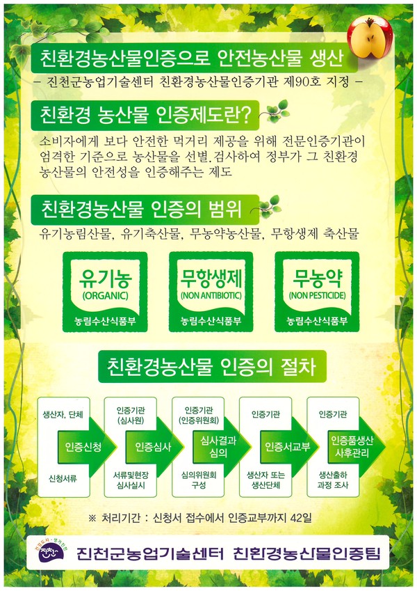 하지만 친환경 인증서가 발급되면 대부분의 비용은 환급받을 수 있다.신동화 군 농업기술센터 소장은 “유기농 특화도라는 충북의 야심찬 선포에 발맞춰 진천군을 친환경농업 특화군으로 만들기 위해 노력하겠다”고 말했다.