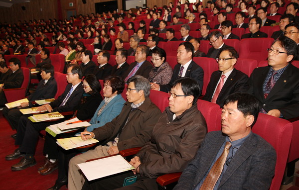 충북도교육청이 11일 학생교육문화원 대공연장에서 각급학교 교(원)장, 교육지원청 교육지원과장, 직속기관 선임 연구관 등 530여명이 참석한 가운데 ‘2016년 제1차 학교장 연찬회’를 열었다.