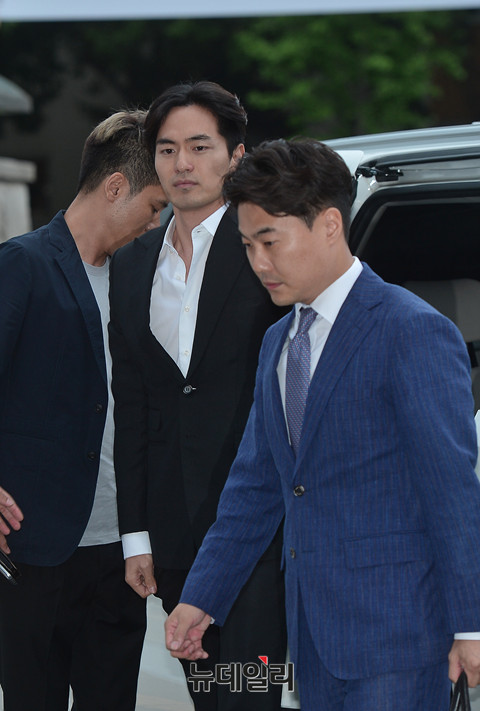 성폭행 혐의를 받고 있는 배우 이진욱이 17일 오후 6시 57분께 서울 강남구 수서경찰서에 피의자 신분으로 출석했다.