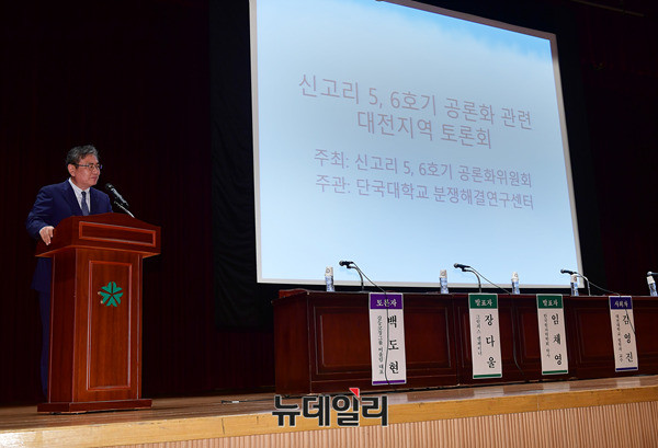 신고리 5·6호기 공론화 관련 대전지역 토론회가 13일 오후 대전시청 대강당에서 개최됐다. 토론회는 가상준 단국대 분쟁해결연구센터 소장의 개회사와 김영원 공론화위원회 위원의 축사로 시작했다.